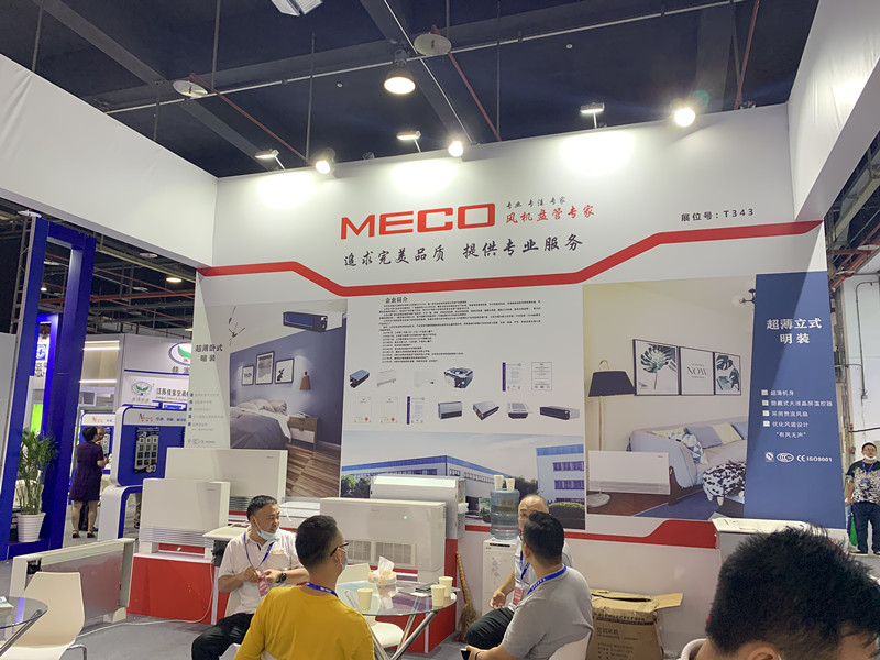 In this exhibition, MECO displayed two series of products, decorative floor standing type fan coil unit and ceiling concealed ducted type fan coil unit, which won high praise from various exhibitors and visiting customers. Among them, the horizontal concealed installation series mainly focuses on the thin horizontal concealed fan coil unit of home decoration series